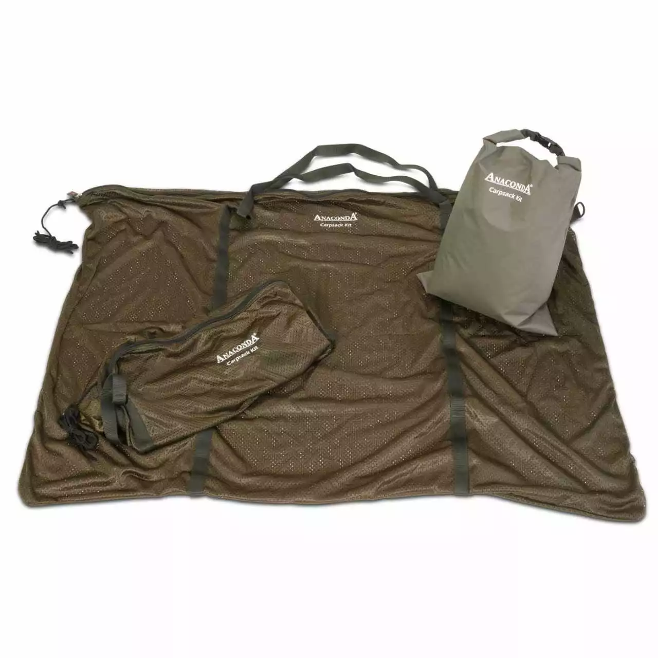 Karpfensack-Set hergestellt aus schnell trocknendem, besonders fischschonenden Material mit einer hervorragenden Wasserzirkulation. Die Karpfensäcke des Anaconda Carp Sack Kit besitzen einen kräftigen Reißverschluss, der sich mit Hilfe eines Karabiners verschließen lässt.
