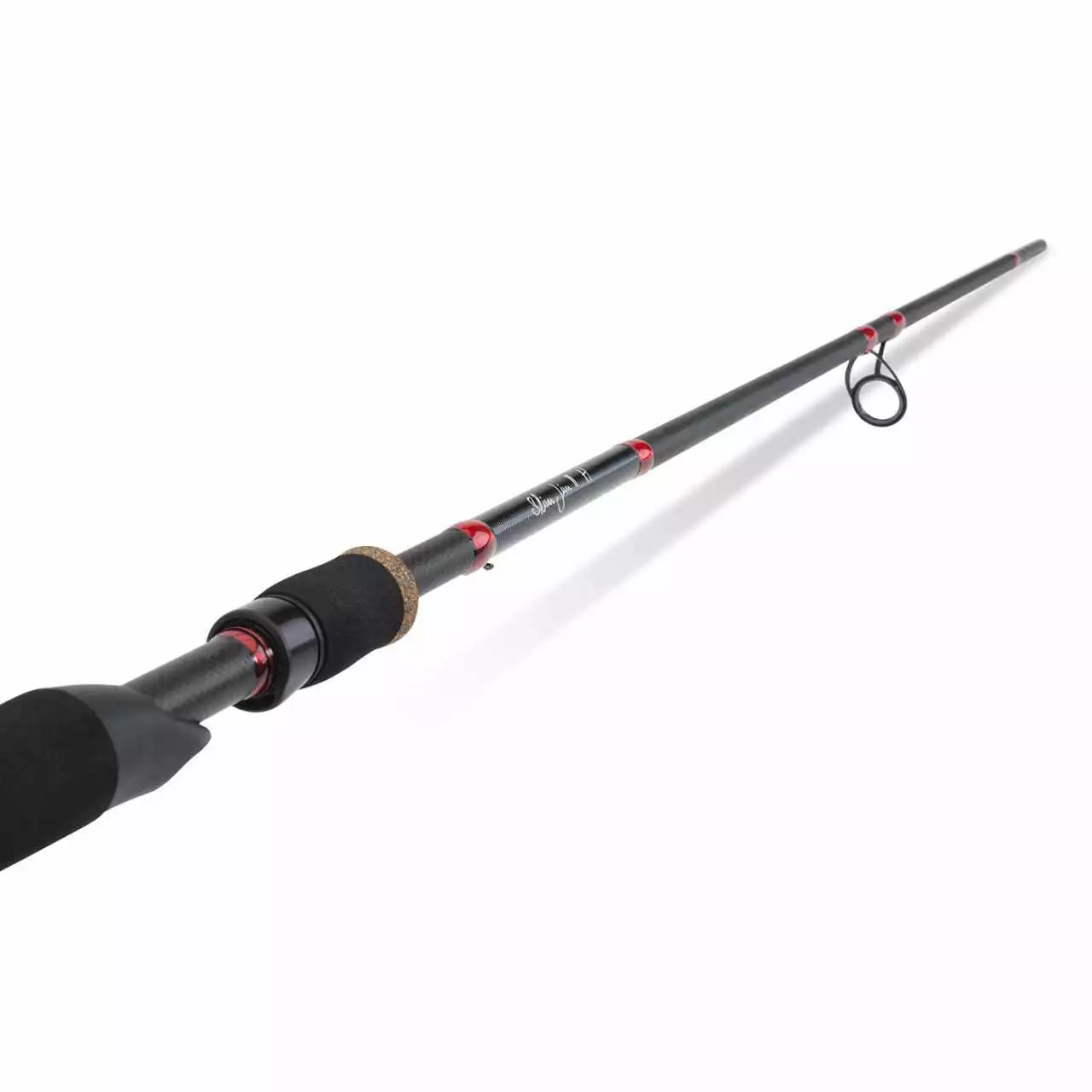 Durch die Blank Konstruktion mit 24t High Carbon ist diese Rute schon besonders stabil. Dennoch wurde der Blank noch zusätzlich mit einer Carbon Struktur Beschichtung überzogen damit sie ein noch stärkeres Rückgrat erhält. Trotz dieses extrem stabilen Aufbaus ist die Slim Jim II überaus flexibel und bietet dir eine schnelle Aktion und eine hervorragende Bissübertragung.