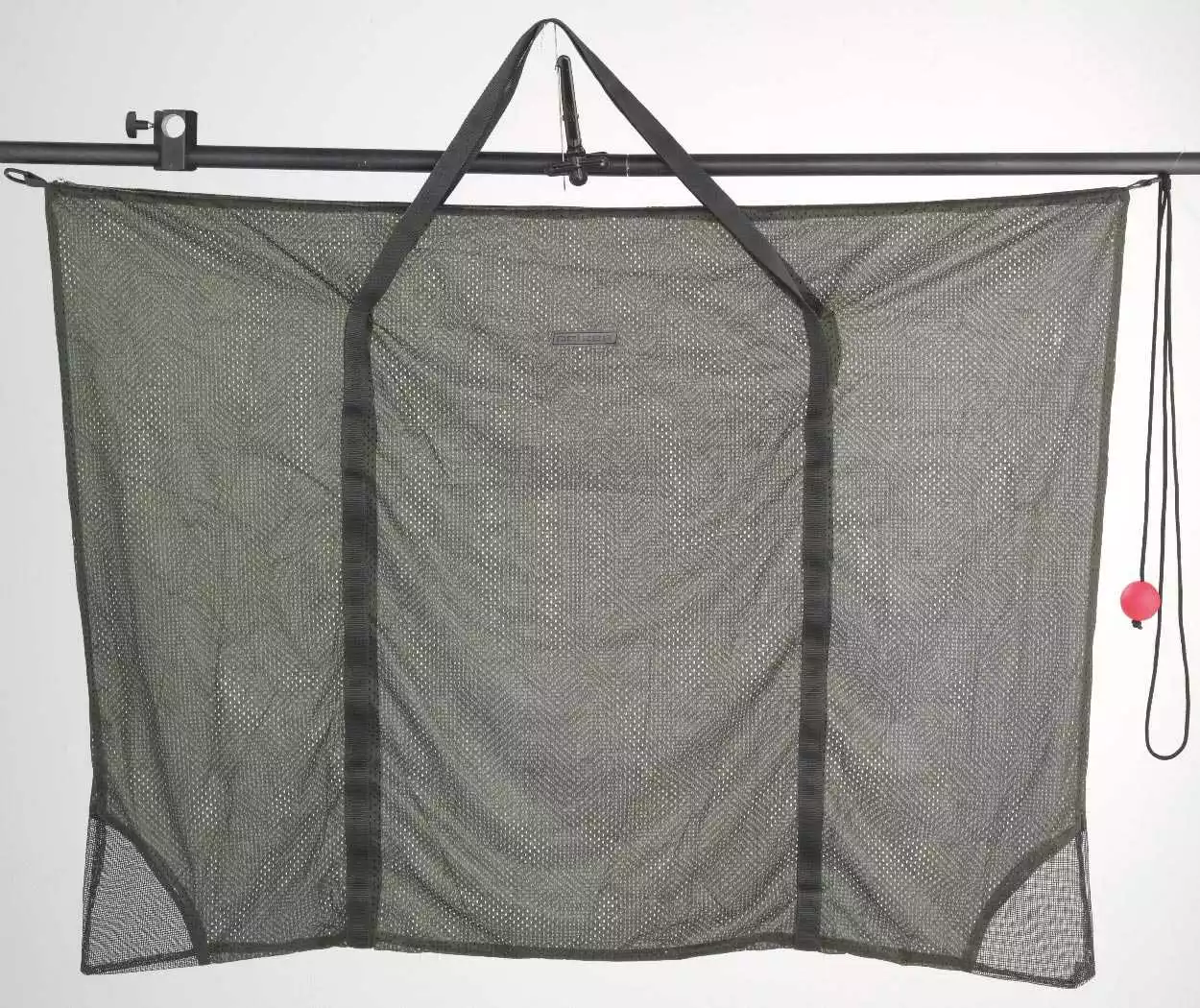 Der D-Ring zum Befestigen eines Halteseils ist bereits angebracht. Der robuste Reißverschluss zum Öffnen und Verschließen des Carp Sacks verläuft durchgehend über zwei Seiten.